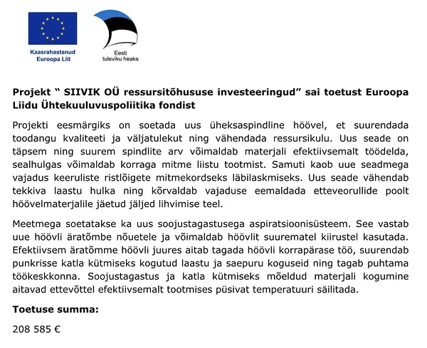 OÜ Siivik on asutatud 1996 kohalikul kapitalil. Põhitegevuseks on nii kohaliku kui ka väärispuidu hööveldus (liistud, voodri- ja põrandalauad, terassilauad, höövelprussid, eriprofiilid), puittooted, eritellimusmööbel, puitaedade detailid, jpm. Pakume ka hööveldusteenust. Küllalt suure osa meie toodangust moodustavad eritellimustööd.